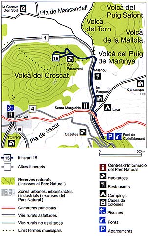 A l'Àrea de Santa Margarida, trobem l'inici d'aquest itinerari que ens permet visitar l'impressionant tall del Croscat. Ens cal travessar la carretera d'Olot a Santa Pau i seguir els senyals d'aquest itinerari en direcció al volcà del Croscat, que veiem a l'esquerra del camí. Des d'aquest primer tram, no es veu el tall sinó només la mola del volcà. Després de Masnou,